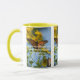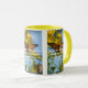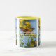 Esta taza de dos tonos muestra un tipo de letra con letras blancas que muestra el versículo de la biblia "2 Samuel 22:33 KJV" sobre una imagen de fondo que muestra a dos mariposas naranjas y negras sentadas sobre flores de león bajo un cielo azul claro con un tema de naturaleza floral. Este verso hace referencia al capítulo 22 del Libro de 2 Samuel que muestra el tema de la frase 33 de esta biblia de la Biblia de James. La llanta y la manecilla están acristaladas con colores a juego disponibles en la construcción de cerámica de microondas y lavavajillas de 11 onzas o 15 onzas.
