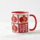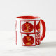 tres rodajas granadas dentro de cajas cuadradas con la palabra granado en la cuarta caja estilo Art Deco rojo negro