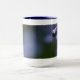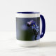 La fotografía macra de la nomeolvides florece en la taza azul del campanero 15oz.