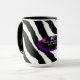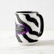 Un elegante estampado de piel de cebra acentúa esta taza, un oval morado con acentos estelares. Cambie los estilos como desee.