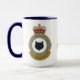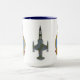 Mug de cerámica de alta calidad de 15 oz con los escudos de 441 Squadron y 1 Grupo de Aire Canadiense, y una vista superior del icónico CF-104. El interior y el mango de la taza son azul cobalto.