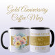 Celebra 50 años felices junto con esta alegre taza de café con flores de gerbera brillantes! Perfecto para aniversarios, este diseño vibrante puede ser personalizado con tus nombres y el año en que comenzó tu historia de amor. Ya sea que estés bebiendo café o té por la mañana por dos, esta taza personalizado te hace un sincero regocijo de tu viaje. Un dulce y atento regalo para tu esposa o pareja favorita — ¡floreciendo con amor y alegría! Ideal para celebrar el 50 aniversario, este fango floral le da un toque personal a cualquier momento acogedor. ¡personalizar tuyo hoy y brindas por cuatro décadas de amor! Oro / Púrpura