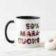 This mug celebrates the joyful identity of being 50% Maracucho, that beautiful mix of cultures that many of us carry with pride. The bold lettering is filled with a pattern inspired by the iconic folkloric tapestry created by Maracaibo artist Luis Montiel, a symbol deeply tied to the spirit of our city.