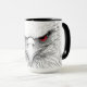 A mug with a picture of a bird with red eyes. It looks very unusual. A great gift.