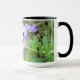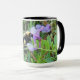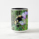 Taza Abeja en flores silvestres moradas.
