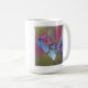 una taza de café con una pintura contemporánea de "pájaros en el amanecer"