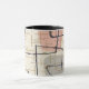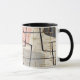 Esta taza abstracta moderna de la tela de los mediados de siglo ofrece una reproducción de una tela de los años 50 del vintage. El fondo es ecru con las líneas del negro y del oro. La tela también ofrece formas grises y rosadas del arte moderno. ¡Es una ráfaga a partir del pasado! Éste es el diseño perfecto para cualquier persona que ame artículos con una sensación retra.