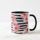 Taza Abstracto acuarela rosa Floral y rayas negras