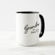 Celebra el momento en que se convierte en abuela con un diseño limpio de negro sobre blanco que presenta su nuevo título, un acento de corazón dulce y un año de establecimiento personalizable. Es una forma sencilla y sincera de compartir la noticia, ya sea que estés planeando una revelación sorpresa o marcando un hito que recordará cada vez que sirva una taza. El diseño aparece en ambos lados para una fácil visibilidad, y los colores se pueden ajustar para que coincidan con el estilo de tu anuncio. Un recuerdo cálido y moderno para el miembro más nuevo del club de las abuelas.