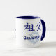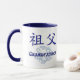 Abuelo en caracteres chinos/símbolos con un diseño azul del dragón. El texto es azul marino. Regalo hermoso de la adopción de China para el abuelo.