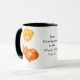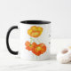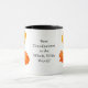 Una taza blanca de ringer con un borde y mango negro, decorada con disfraces islandeses de naranja brillante de una pintura acuarela de Judy Adamson. El texto, en negro, es '¡Los mejores abuelos del mundo entero!'