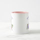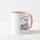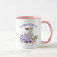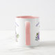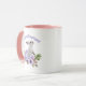 Cute Watercolor Easter Bunny Rabbit en una cama de flores pastel. Este dulce ilustracion muestra a un conejito blanco parado sobre sus pies traseros oliendo el aire. ¡Feliz Pascua! está escrito en un tipo de letra curvado, liviano y púrpura con una ligera sombra de caída. El diseño está a ambos lados de la taza, por lo que muestra cualquier mango que se use. ¡Qué lindo! Ideal para Pascua. Disponible en muchos estilos, colores y tamaños.