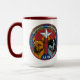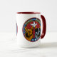 Esta taza fue diseñada por los artistas Ana LePere y Susan Phillips de Carolina del Norte. Fue inspirada por el dialecto de Pennsylvania que el maleficio firma y que captura perros rojos y azules del ganado, con el texto adicional: Velocidad, agilidad, determinación, inteligencia.