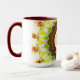 Esta taza de colores vivos presenta una imagen fractal caleidoscópica que se asemeja a una flor acuarela de color otoñal.