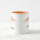 Un tazón de café con un ilustracion acuarela de un árbol de otoño en un día ventoso con hojas que soplan y caen en colores otoño. La secuencia de comandos Volar vibraciones se centró debajo del árbol en un color de fuente para coincidir con los ilustraciones. La imagen se repite y se invierte en la parte posterior de la taza. Colores adicionales de borde y mango disponibles. Estilos adicionales disponibles.