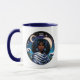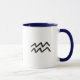 Una divertida taza de café de Acuario con una mujer afroamericana con un fondo celeste de estrellas y luna.