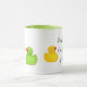 Adivina ¿Quién va a ser papá? Coffee Mug con adorables patitos de goma amarillos y verdes.