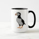 Puffin de Puffin encorvado de pie ilustrado desde la vista lateral. La cabeza de este pájaro de bonito se gira para mostrar su marca de pico.