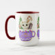 Un Navidad adorable conejito animal en una taza de alegría con elementos Navidades en una taza de su bebida favorita de vacaciones.