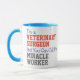 Mensaje divertido en una taza para un cirujano veterinario. Dice "Me puedes llamar trabajador milagroso".