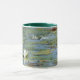Acuarela De Flor De Lago Watelily, Café Mug. Arte Digital. Una de las dos obras de arte de las lilas de agua y las toallas de lirio, al estilo de Claude Monet. Una flor blanca rodeada de colchas de lirios de diferentes tonos verdes.