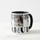 Enjoy your favorite beverage with this special customizable photo Malamute mug, which elegantly features the breed name, "Malamute," in a clean, bold text graphic. The main focus of this ceramic mug is the ability to personalize it completely by adding four separate photos of your beloved dog. This design creates a unique, heartfelt collage, transforming a simple coffee cup into a treasured keepsake for any Malamute owner, lover or enthusiast.
