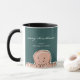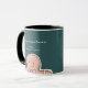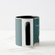 Este tazón de café presenta un diseño limpio y moderno, con un metalizado exterior verde y un interior blanco que contrasta. El elemento visual principal es una alegre figura de pan de jengibre en la parte inferior de la taza, representada en un suave tono marrón con acentos de hielo blanco, con corbata de arco y decoración de brazo. El ilustracion minimalista aporta un toque festivo y lúdico a la decoración general. La disposición hace hincapié en la sencillez, con un amplio espacio blanco alrededor de las obras de arte que le confiere un aspecto refinado.