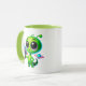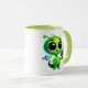 L'image montre un petit extraterrestre vert avec des yeux grands et ronds, qui tient un pistolet laser brillant. Il est accompagné d'une petite planète flottant à côté de lui, ajoutant une touche magique à l'image. L'extraterrestre, avec sa forme arrondie et ses antennes, a un look super mignon qui plaira à tous les enfants et les amateurs de science-fiction. L'illustration est réalisée dans un style cartoon avec des couleurs vives et joyeuses, créant une ambiance fun et futuriste. L'arrière-plan de l'image présente des éléments spatiaux qui complètent parfaitement l'univers intergalactique du personnage. Un dessin parfait pour ceux qui aiment les extraterrestres et les aventures dans l'espace.