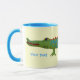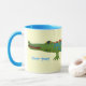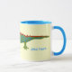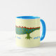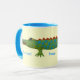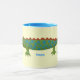 Blanco y azul claro de 11 oz. personalizable combinado con la imagen de un lagarto verde con una balanza de puntos polka azul coronada con una balanza de puntos polka rojo sobre amarillo suave. Vea la combinación de tarro de caramelo y plato de papel. Vea toda la colección Kidz Korner Mug bajo la categoría HOME en la sección KIDZ KORNER.