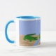 Personalizado de arte caprichoso de un lagarto verde caminando a un arroyo azul creado con papel de construcción y manipulado en Photoshop por KLeighE de Hinterland Harmony's Whimsical Personalizado Art ™