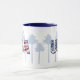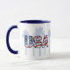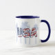 Una vintage camisa hawaiana de aloha impresa en combinación con una bandera estadounidense para crear este gráfico enmarcado por palmeras. Personalizar este diseño en tu taza favorita.