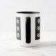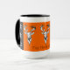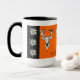 La taza moderna elegante del estilo rural que ofrece la cabeza y las astas blancas de tres ciervos en un fondo anaranjado con las rayas laterales negras adornadas con Edelweiss alpino blanco florece. Idea hermosa del regalo para el navidad o cualquier otra ocasión. Un regalo hermoso para sus amigos, familia