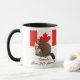 El diseño patriótico canadiense hace una fuerte declaración y presenta una bandera canadiense con un castor en primer plano. El texto dice... Canadá, Ama O Déjalo.
