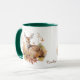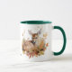 Esta taza tiene una bonito acuarela en la imagen de otoño que presenta un adorable ciervo manchado tendido entre las hojas de otoño marrones y naranjas. La imagen se imprime dos veces en la taza, con su nombre o monograma en castaño entre las imágenes.