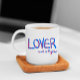 Diseño hecho a mano con la frase "Amante y luchador". La letra se representó artísticamente en colores azul y rosa. Una declaración simple. Un buen regalo.