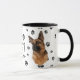 Esta taza para el propietario del Pastor Alemán incluye un hermoso retrato de un Pastor Alemán. La imagen se imprime dos veces, y entre ellas hay un óvalo con el texto negro que dice "Ama mi GSD". Las imágenes de oval y de perro se colocan sobre un fondo salpicado de huellas de pata negra. Puede cambiar fácilmente el texto a otro, o personalizarlo, si lo desea.
