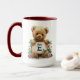 Este adorable ilustracion cuenta con un suaves oso de peluche rodeado de flores rosas suaves y hojas verdes. El oso sostiene un cartel con la leyenda "Te quiero más", y agrega un reconfortante toque perfecto para expresar afecto. La leyenda se puede personalizar.