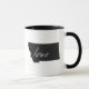 Con la silueta de silueta forma de mapa del estado del tesoro de Montana lleno con un sólido fondo negro de pizarra y la palabra mano de amor escrita en el interior de toda tiza blanca en minúsculas esta taza de café de montaña de amor es perfecta para cualquier Montanán que ame el estado de Montana para disfrutar de una buena bebida caliente y compartir cómo se siente acerca de su estado favorito.