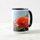 Hermosa amapola roja y cielo azul con texto: "ten un buen día".