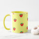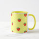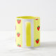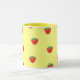 Taza de café amarilla de las fresas. La taza adaptable tiene fresas rojas lindas en un fondo amarillo.