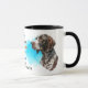 Un retrato acuarela de un hermoso perro pintor alemán al aire libre es la característica en dos lados de esta taza. Cada imagen se coloca sobre un fondo de bandeja azul brillante. Entre las dos imágenes está el texto que describe a este compañero leal y juguetón, con "PUNTO ALEMÁN CORTO" en negro en la parte inferior. ¡Todo el texto se personaliza fácilmente a cualquier cosa que prefieras para que puedas describir a tu propio amigo leal!