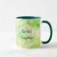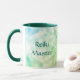 Taza principal azul y verde de Reiki. Tema - curador curativo del "nuevo médico holístico espiritual de la edad"