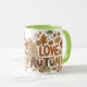 Este delicioso conjunto combinado de tazas presenta el encantador diseño "I Love Autumn" en dos tazas perfectamente emparejadas. Disfrute de sus bebidas calientes favoritas con un amigo o un ser querido mientras celebra la belleza de la temporada. ¡El regalo perfecto para los amantes del otoño!