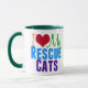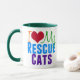 Un lindo regalo para un dueño que ama rescatar a los felinos dulces del refugio animal y darles un hogar amoroso. I Heart My Rescue Cats está escrito en naranja, rojo, verde, azul y púrpura por una taza divertida y colorida para un amante del gatito.