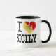 Amo Sicilia con la bandera siciliana de los Mugs del Corazón