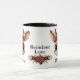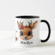Celebra la temporada de fiestas con esta taza festiva con llanto negro y mango con entrañable personalizado gráfico de un lindo ciervo bebé con cara de ciervo y poinsettias escondidas en sus oídos. El nombre y el amor al reno están escritos en negro. La taza perfecta para usted o como un regalo reflexivo, esta cosa caprichosa hace un querido placer por los años venideros. ¡Disfruta de este diseño floral y floral! Personalizar cambiando el texto, el tipo de letra, el color del tipo de letra o eliminando el texto. Incluso puede transferir este diseño a otros productos. Consulte ForestBabies Xmas Deer Collection para ver los productos correspondientes. 🎄 🦌
