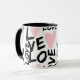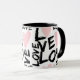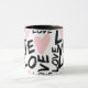 Una visión moderna del amor, con un tipo de letra negra garabateada y corazones rosa pálido dibujados a mano, que recuerda a la famosa escultura del "AMOR" de los años 70.