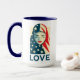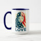 Este diseño presenta la figura de una mujer musulmana que usa un hiyab de la bandera estadounidense.