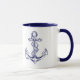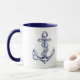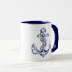 Decoración costera marítima con temática de blanco y azul marino tazón de café