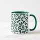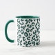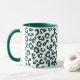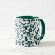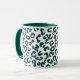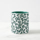 tazón de café en una huella digital, minimalista, animal en un patrón de chita - puntos en un verde de pino profundo sobre un fondo blanco